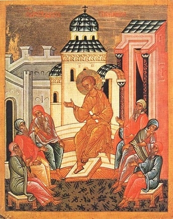 დღესასწაულის იკონოგრაფია მიგვითითებს ტაძარში ქრისტეს მისვლის სხვა შემთხვევაზე, ასევე კარვობის დღესასწაულზე, ოღონდ ყრმობისას (ლუკ. 2, 46). ხატზე უფალი გამოსახულია ყმაწვილად, რომელიც ზის მის მოსასმენად შეკრებილ უხუცესთა შორის.