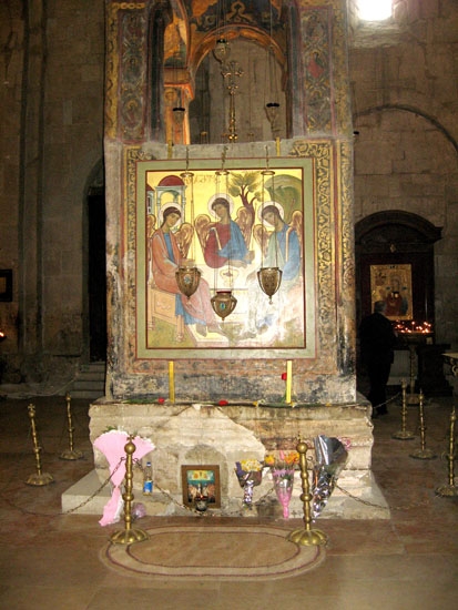 ტროპარი: კათოლიკე ეკლესიისა დღესასწაული, სუეტისა წმიდისა და კუართისა საუფლოჲსა; ნათელი შემოჰკრებს კიდეთა სოფლისათა და სანოვაგედ წმიდად მიჰრონსა გვიწყაროებს, რომელნი წმიდასა ღმრთისმშობელსა და მისგან შობილსა ქრისტესა თაყუანის-ვსცემთ, რაჲთა ვპოვოთ ცხოვრება სულთა ჩუენთა.