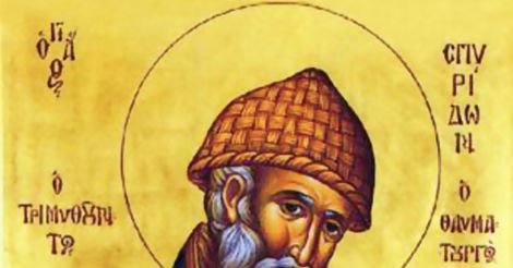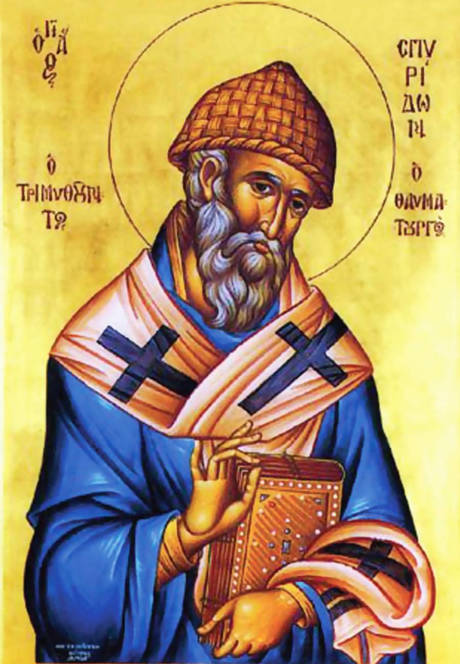 პირველსა კრებასა შინა გამოსჩნდი შენ მბრძოლად ძლიერად, საკვირველთმოქმედო, ღმერთშემოსილო სპირიდონ