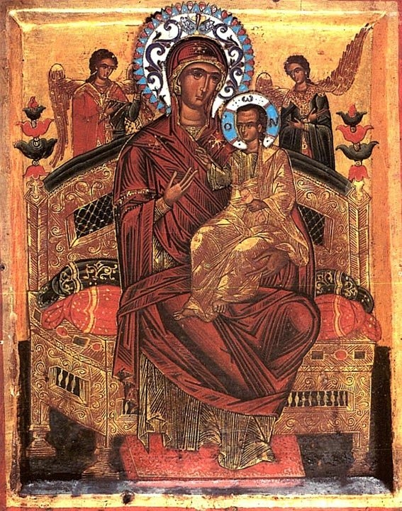 იხილეს რა გუნდთა ანგელოსთასა ხელთა შენთა ზედა თითთა მიერ თვისთა შემქმნელი კაცთა გულის-ხმა-გყვეს შენ მხოლო დედუფალად, თუმცაღა მხევლად უწოდდი თავსა შენსა, ისწრაფდეს მსახურებად შენდა, კურთხეულისა, გალობათა მიერ ესევითართა: