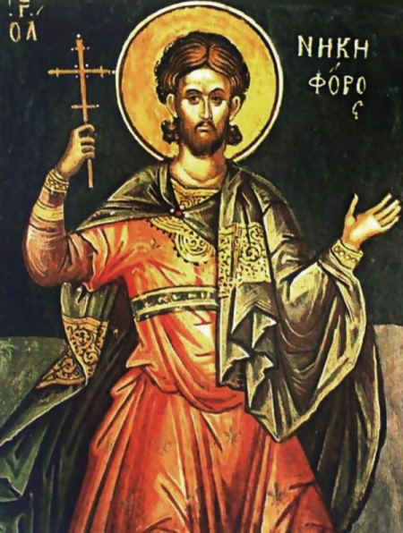 სხვა კონდაკი: ფრთოვან-იქმენ ღმრთისა სიყუარულითა, წმიდაო, რომლისაცა ცხოველი ჯვარი მხართა ზედა აღიღე და არცხვინე სივერაგესა ეშმაკთასა, და იღუაწე ვიდრე სისხლთა დათხევადმდე, და გამოსჩნდი შენ ჭეშმარიტად აღჭურვილი, ნიკიფორე, მესაიდუმლედ ღმრთისა.