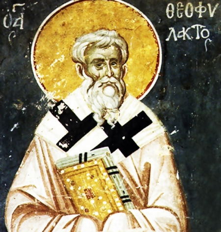 მნათობად ბრწყინვალედ გამოუჩნდი კიდეთა სოფლისათა, წმიდაო თეოფილაქტე, და თანა არსად მამისა და სულისა წმიდისა სიტყუა ჰქადაგე, და საღმრთოთა ცხოვართა კრებული განამტკიცენ, და სათნოდ სამებისა განსცხადენ, რომლისა წინა სდგა, ითხოვე ჩუენთვის დიდი წყალობაი.