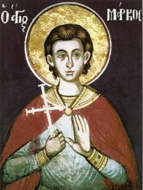 დედა ადრეულ ასაკში გარდაეცვალა და ის მამას სმირნაში გაჰყვა. მამა სასტიკად ეპყრობოდა, მისი მდგომარეობა თურქებმა გამოიყენეს, დაიყოლიეს და ისლამი მიაღებინეს, მუსტაფა უწოდეს. ოთხი წლის შემდეგ მარკოზი სინანულში ჩავარდა, და კუნძულ ზაკინთოსზე გაიქცა, იქიდან კი კრეტაზე ჩავიდა, სადაც მან გარკვეული ხანი მარხვასა და ლოცვაში დაყო. მერე კი კონსტანტინოპოლში გაემგზავრა, სადაც ის ბრძენმა მოძღვარმა მელეტი სირიგამ დაარიგა. ყმაწვილი სმირნაში ჩავიდა, რათა მოწამეობის ღვაწლით აღეხოცა ქრისტეს რწმენის ღალატი. მან საჯაროდ აღიარა თავი ქრისტიანად. იგი შეიპყრეს და ათასგვარი წამების შემდეგ თავი მოჰკვეთეს. ეს მოხდა 1643 წელს, მაშინ 17 წლის იყო. წმინდანის სხეული წმინდა ფოტინეს ტაძარში დაასვენეს და შემდგომ მისგან მრავალი სასწაული აღესრულა.